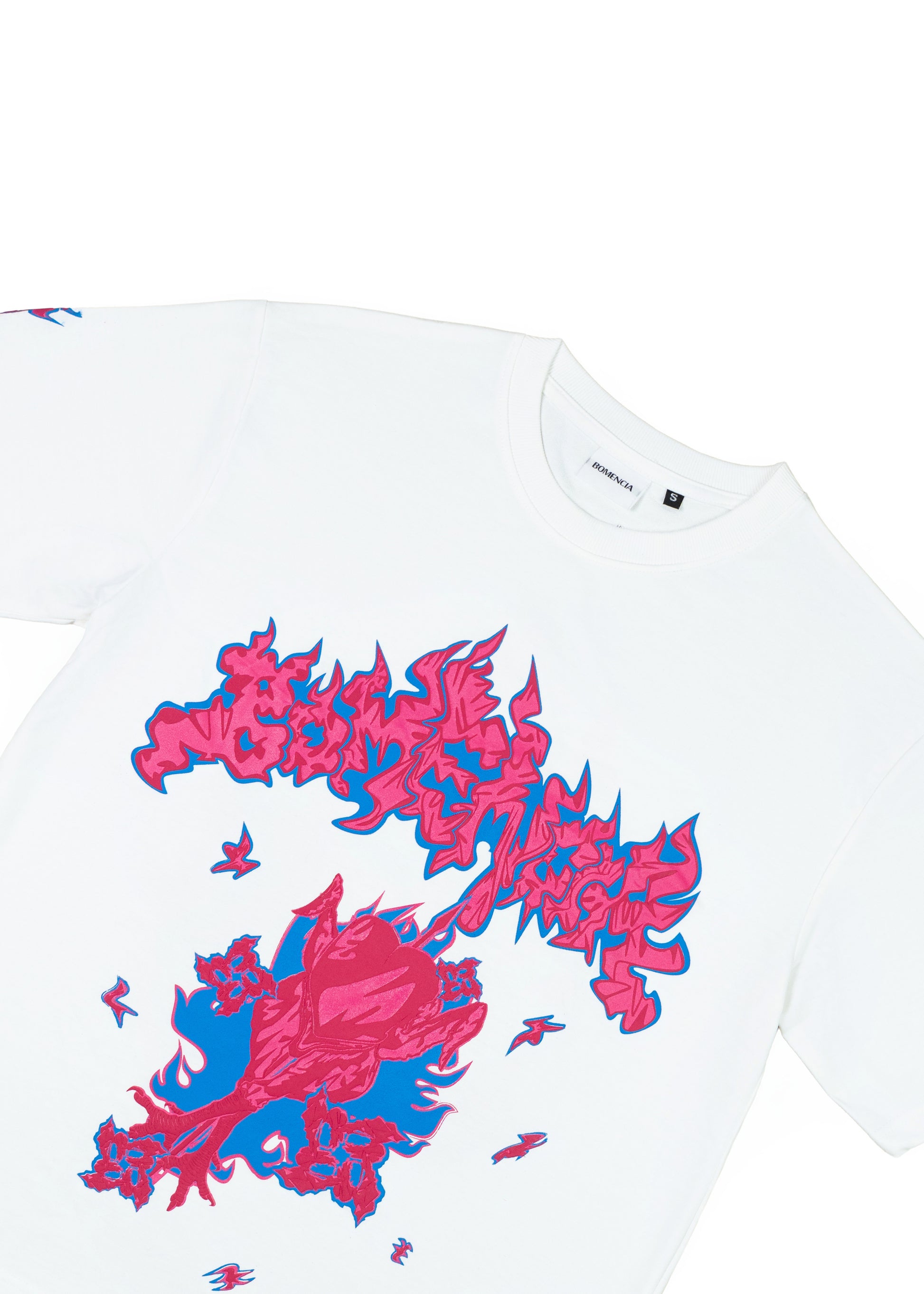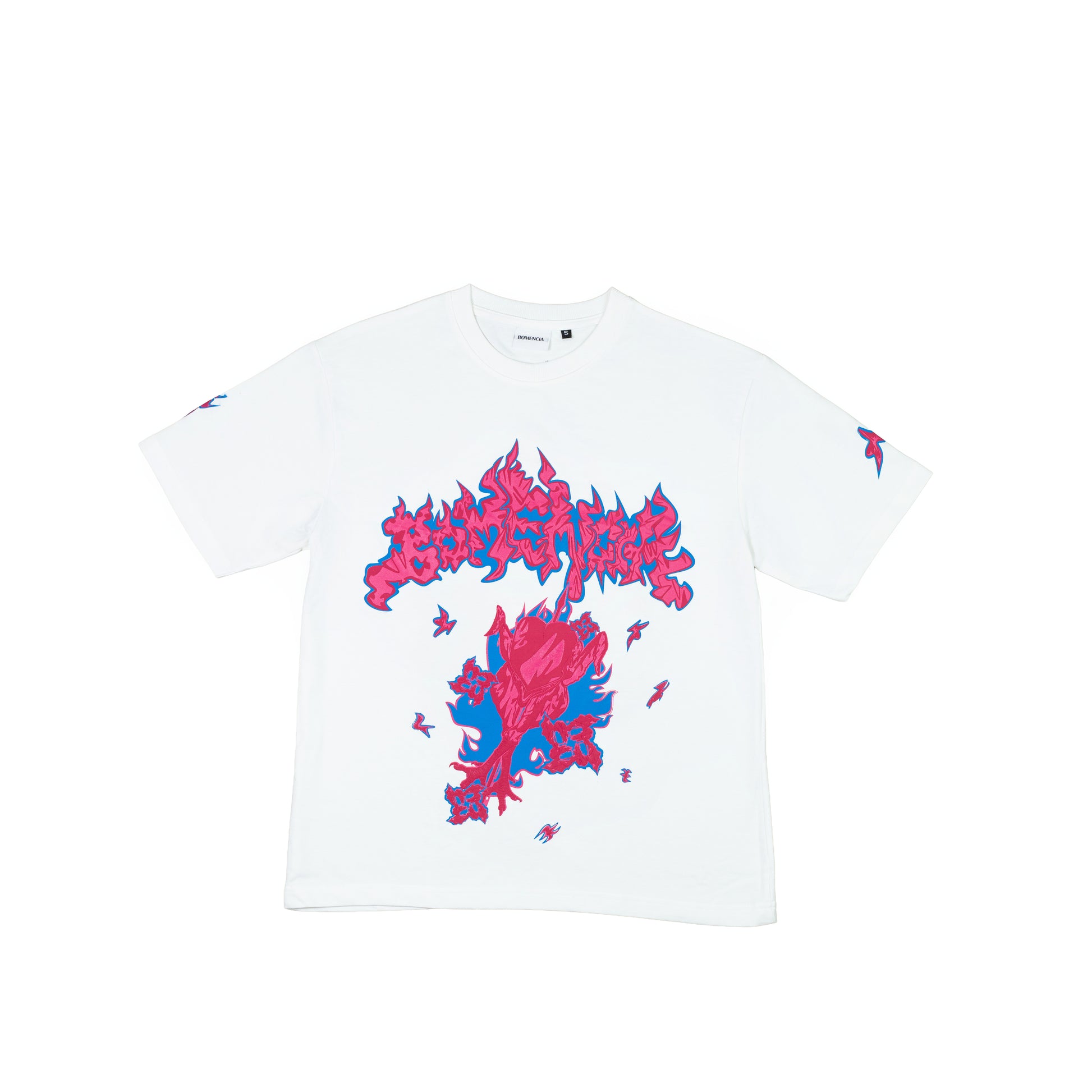 CUT FROM 100% RL COMBED COTTON IN A STURDY 240GSM FRENCH TERRY, THIS HEAVYWEIGHT TEE SERVES PREMIUM STRUCTURE WITH A SOFT EDGE, THANKS TO THE BIO & SILICONE WASH FINISH. ON A CLEAN WHITE CANVAS, THE ARTWORK BRINGS HEAT: GRILLED CHICKEN ILLUSTRATED FRONT AND BACK, PAIRED WITH THE BOMENCIA LOGO REIMAGINED AS A PATTY ON THE GRILL.